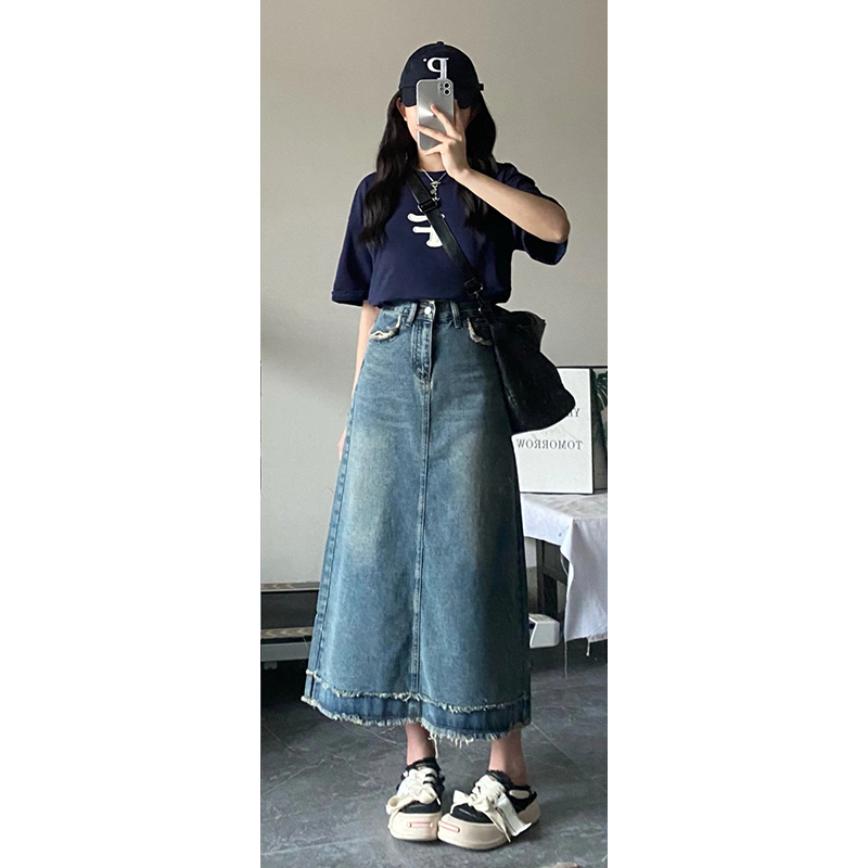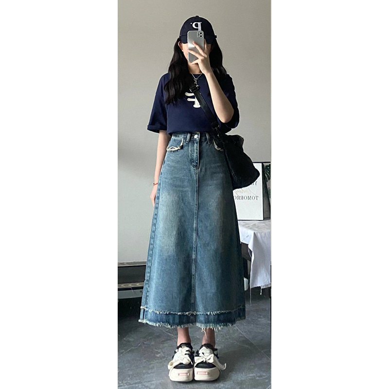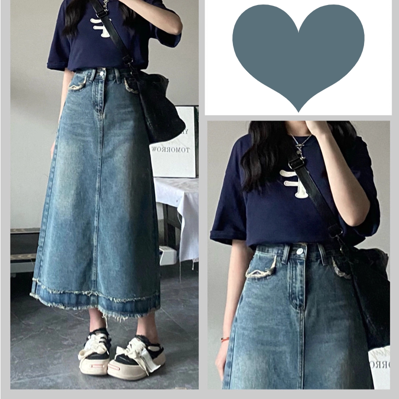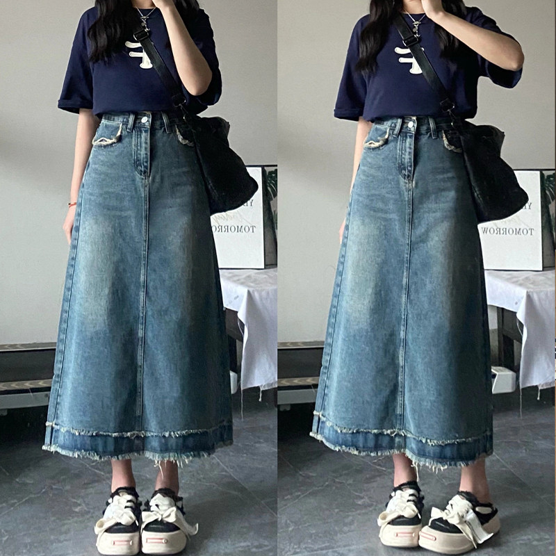 120斤-300斤胖MM高腰a字半身裙梨形身材大码松紧腰遮肉显瘦牛仔裙