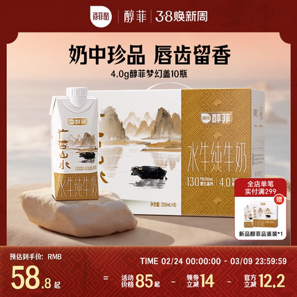 百菲酪4.0g醇菲水牛纯牛奶250ml*10盒奶