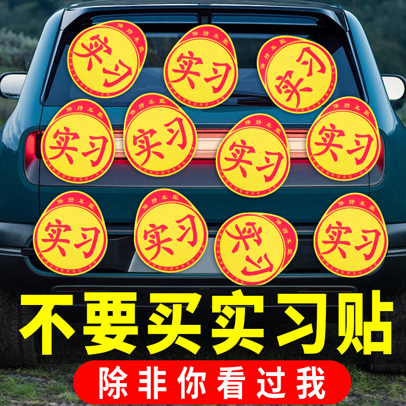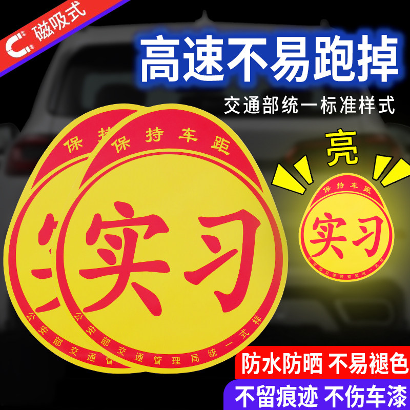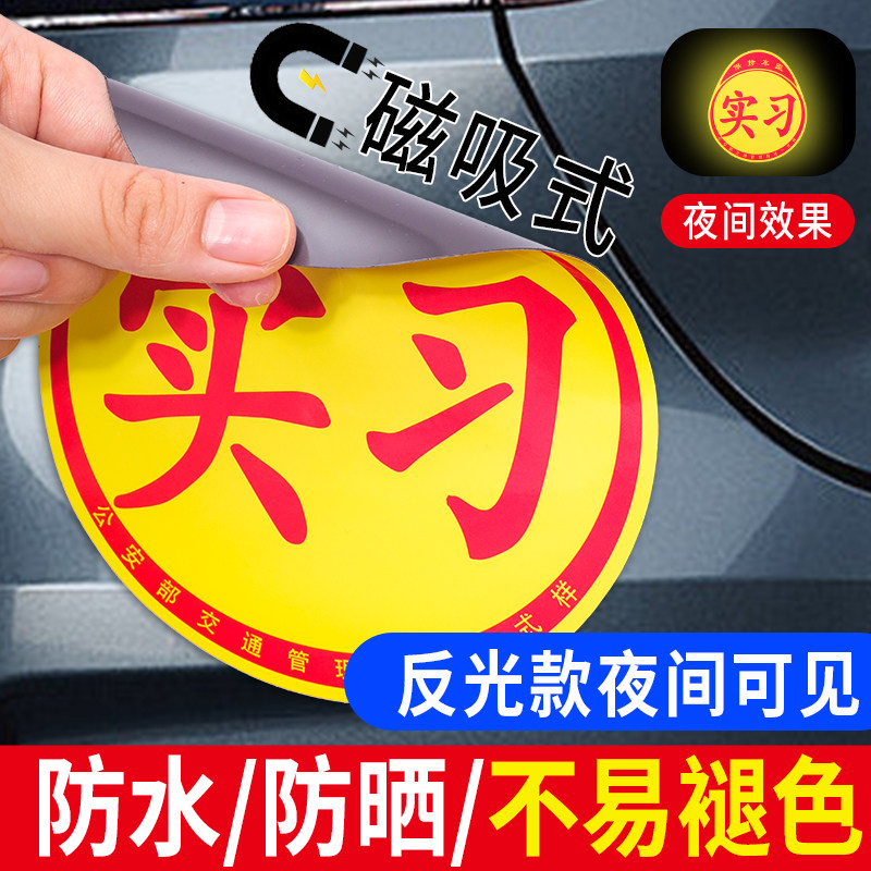 实习车贴磁吸新手上路车贴纸车用女司机实习牌反光汽车实刁车标志