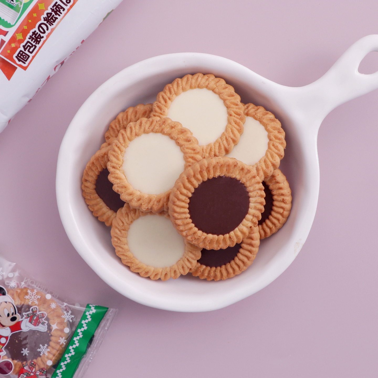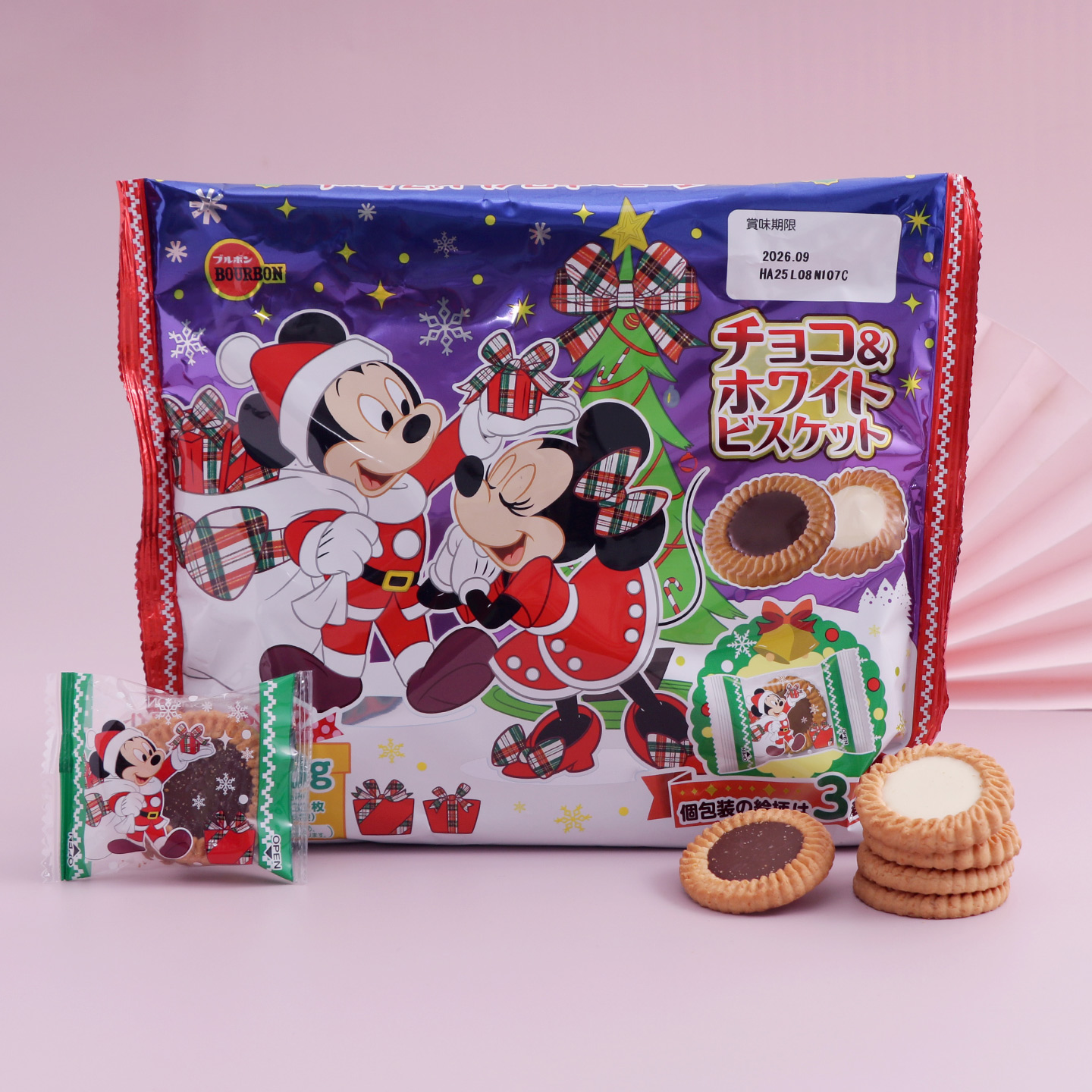 日本进口零食布尔本迪士尼巧克力奶油味曲奇饼干平安夜圣诞节礼物