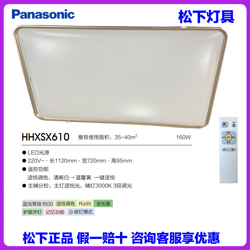 松下灯具160W客厅长方吸顶灯卧室灯餐厅组合棱之阁全光谱HHXSX610