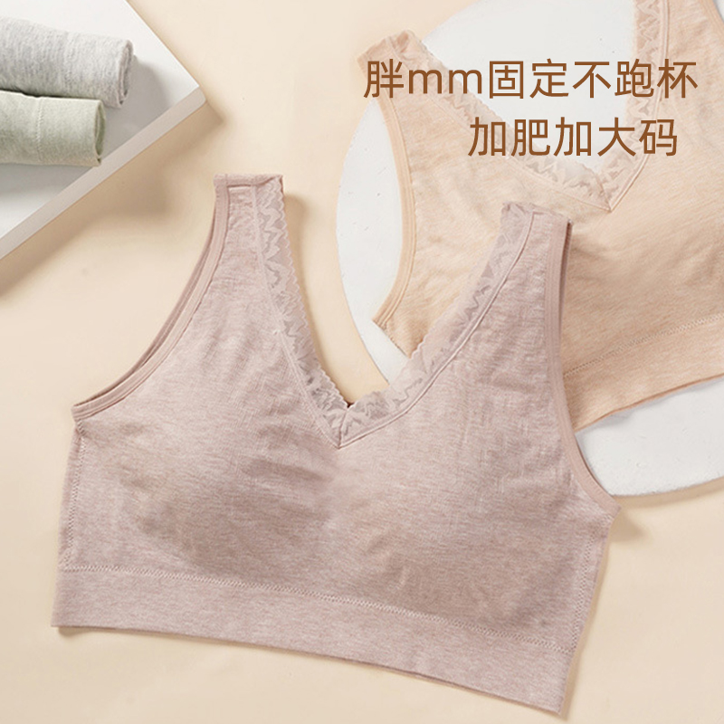 大码内衣女200斤胖mm大胸显小固定薄款无钢圈背心式无痕美背文胸