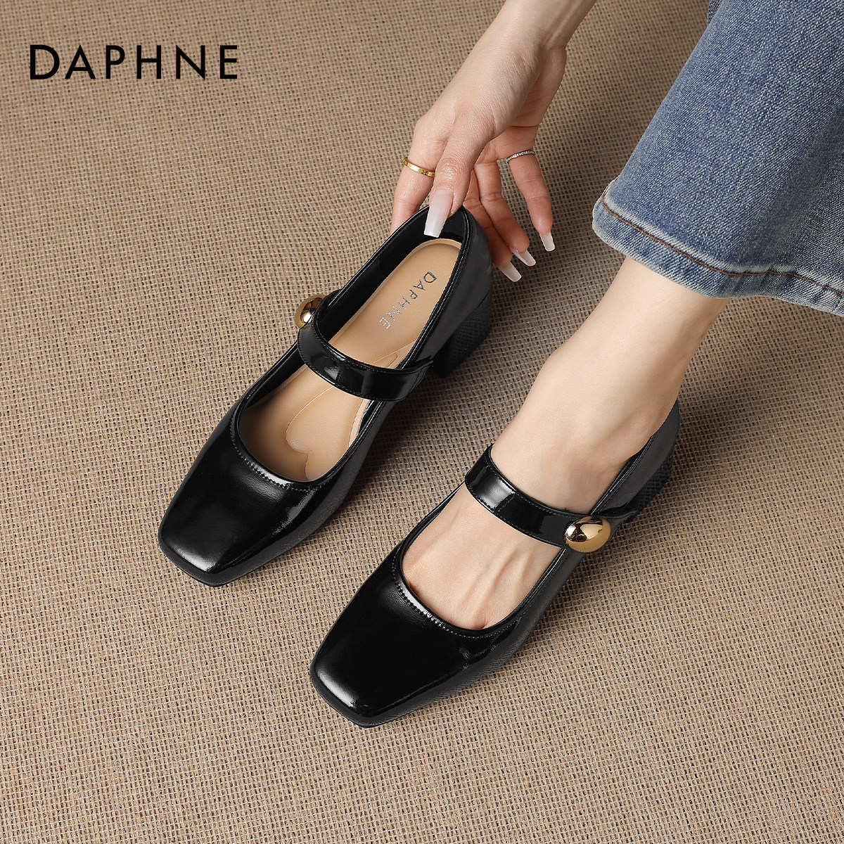 达芙妮法式玛丽珍高跟浅口单鞋