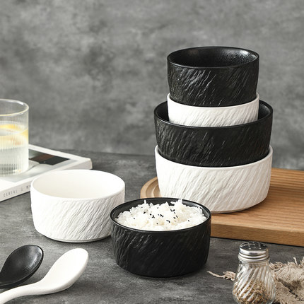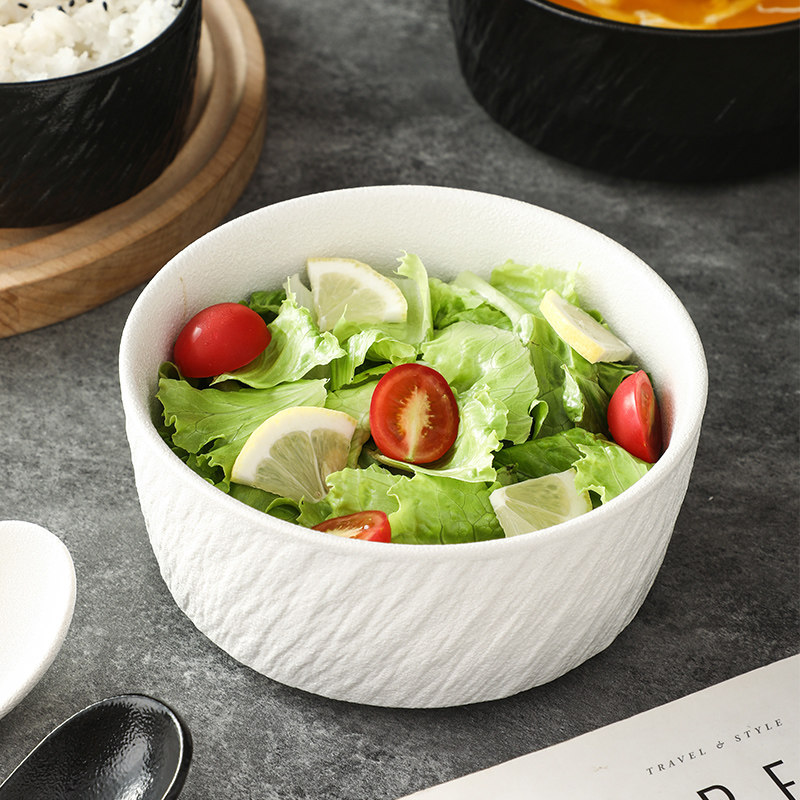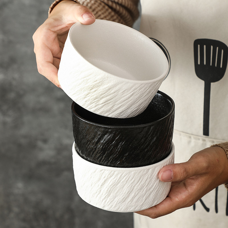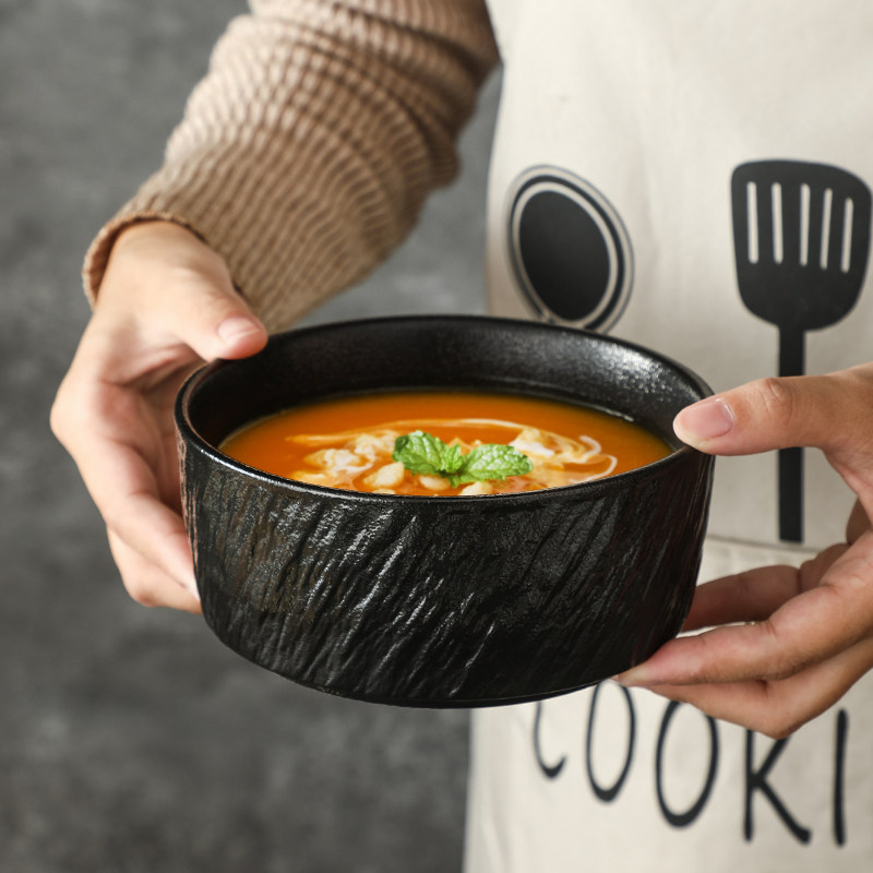 日式黑色陶瓷碗面碗岩石纹碗沙拉碗汤碗吃饭碗菜碗异形碗创意圆碗