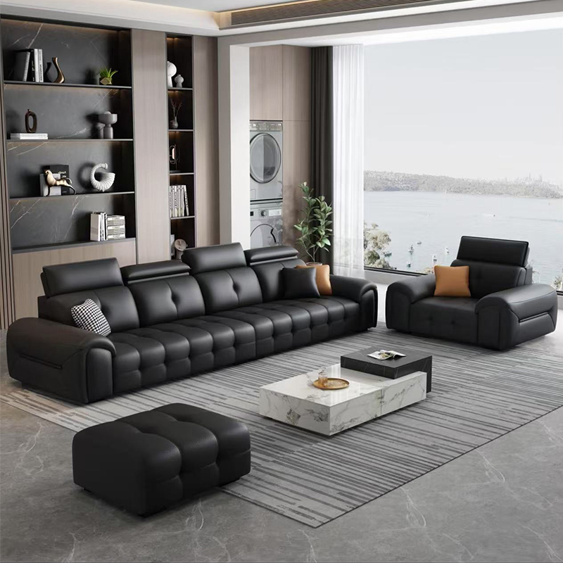意式轻奢极简劳伦斯全真皮沙发简约大小户型客厅黑色家用直排沙发