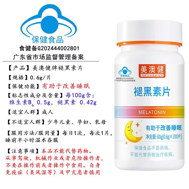 美澳健褪黑素维生素b6片改善睡眠