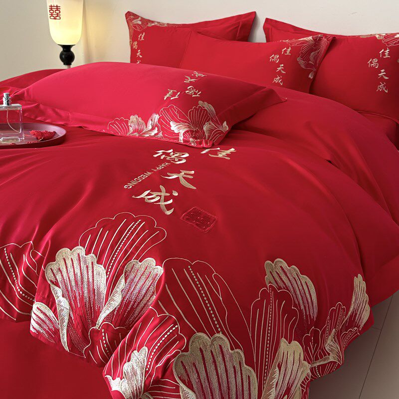 结婚床上用品四件套婚庆大红色新婚刺C绣婚床喜被床单婚嫁2025新