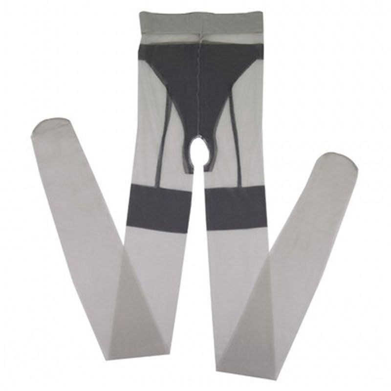 10D假长筒开裆丝袜女通勤连裤袜性感免脱空姐灰假吊带提花条纹