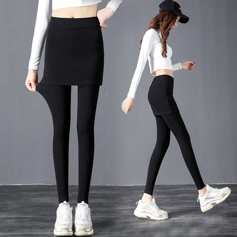 打底裤女春秋外穿百搭假俩件屁帘下摆一体裙裤高腰显瘦大码打底裙