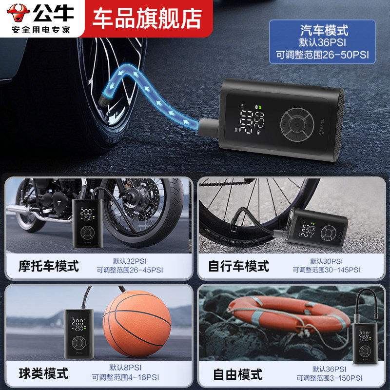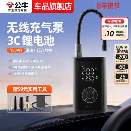 公牛车载无线充气泵便携式汽车用电动打气筒小轿车轮胎车用充气宝