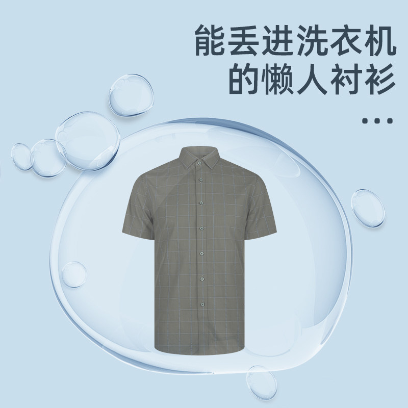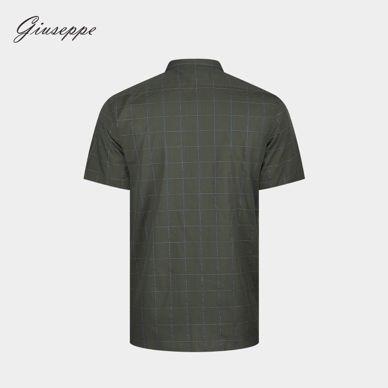 乔治白衬衫男短袖绿色格子新款尖领修身版夏季薄款休闲衬衣