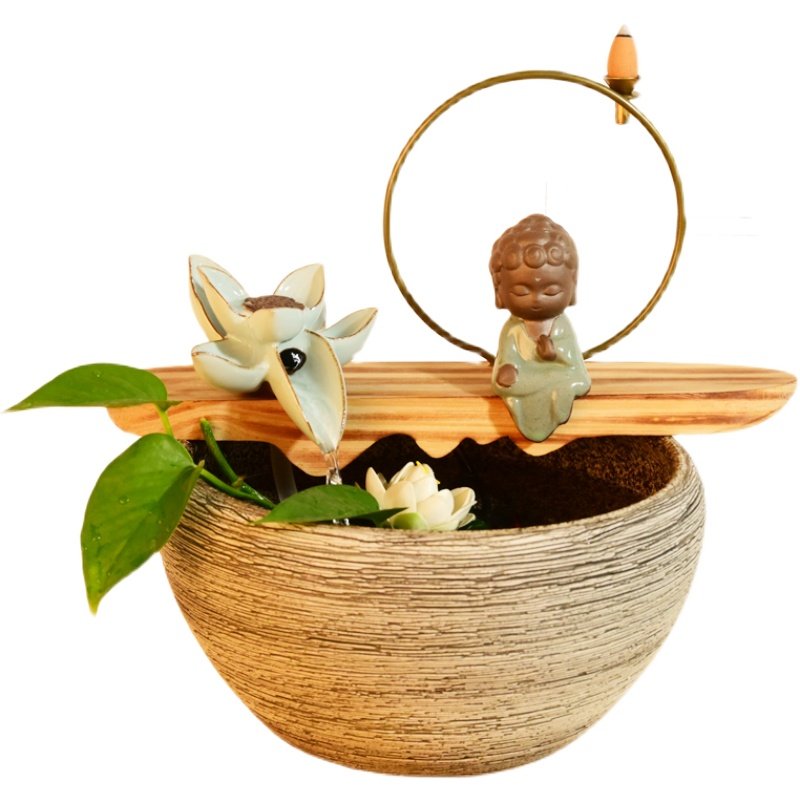 新中式客厅电视柜招财风水轮流水摆件鱼缸造景循环水景桌面小喷泉