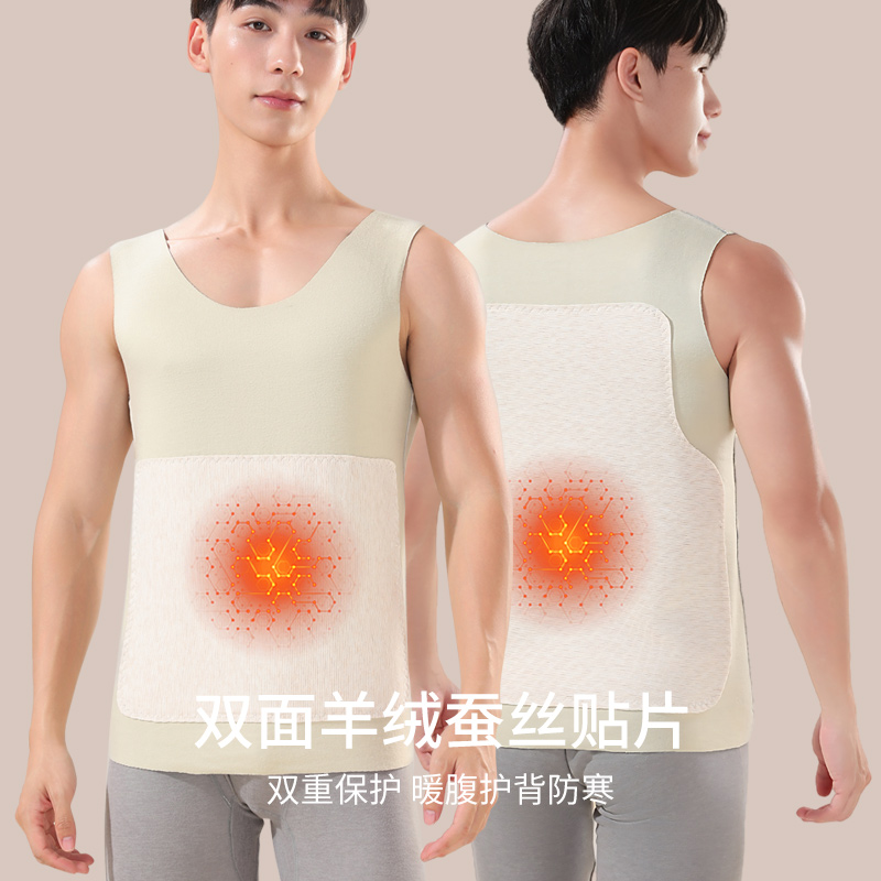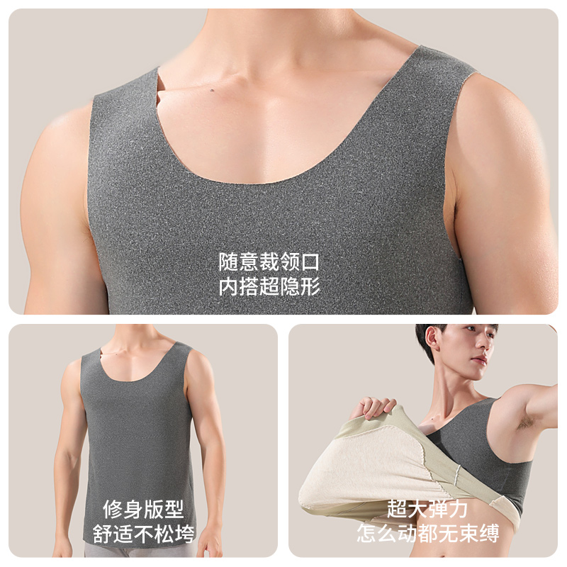 男士德绒保暖背心自带贴片无痕加热秋冬季加绒加厚打底衫单件上衣