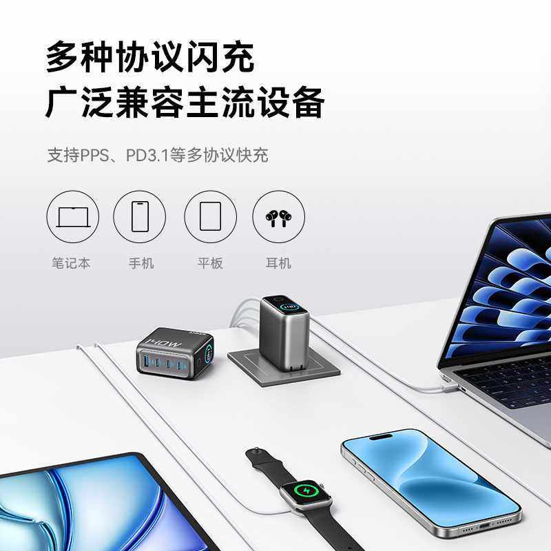 Anker安克140W充电器数据线套装AI屏显氮化镓四口快充适用于iphone16promax华为安卓笔记本电脑平板通用