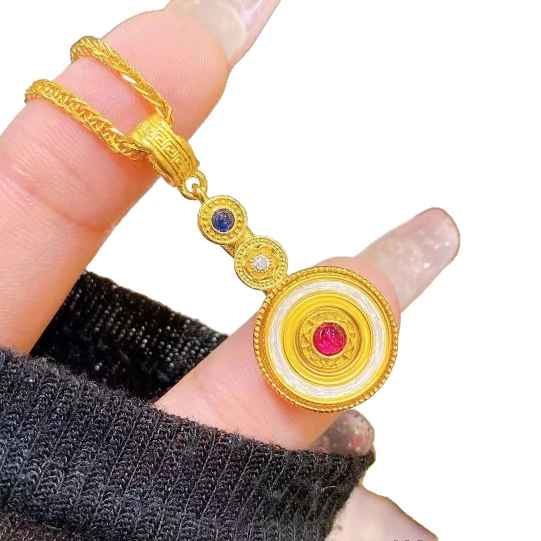 金店同款故宫系列可转动百转呈祥吊坠沙金罗盘项链DIY编绳配件女