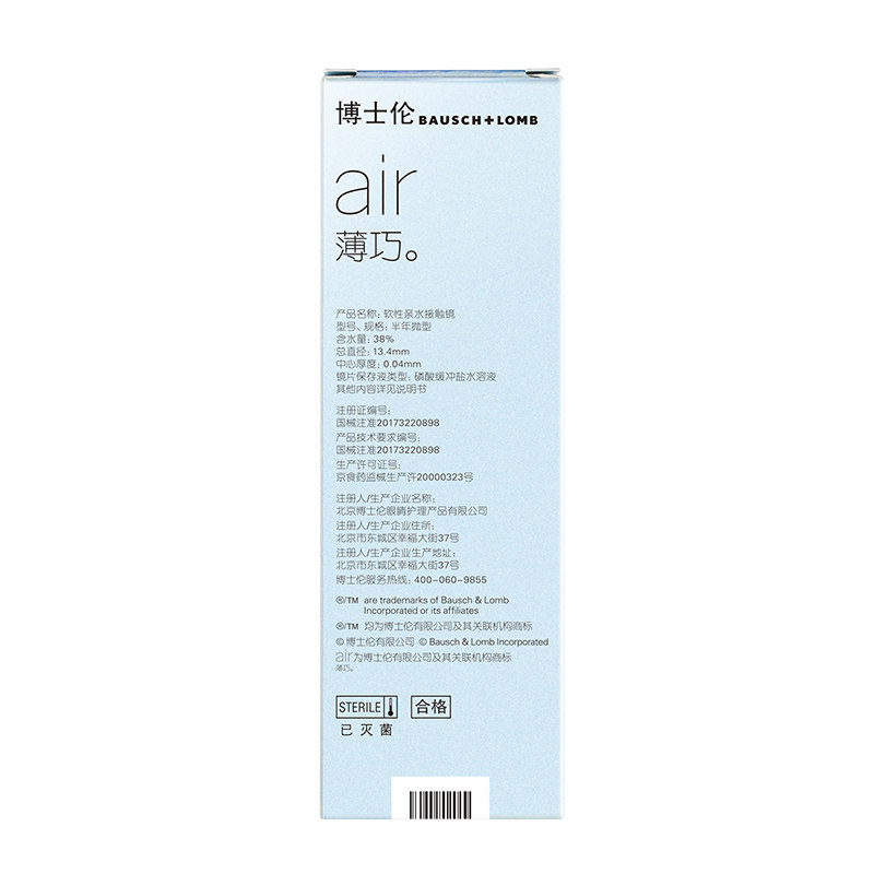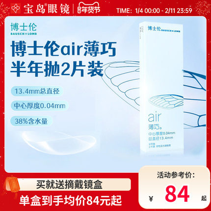 博士伦air薄巧半年抛2片装小直径舒适透明隐形近视眼镜旗舰店正品