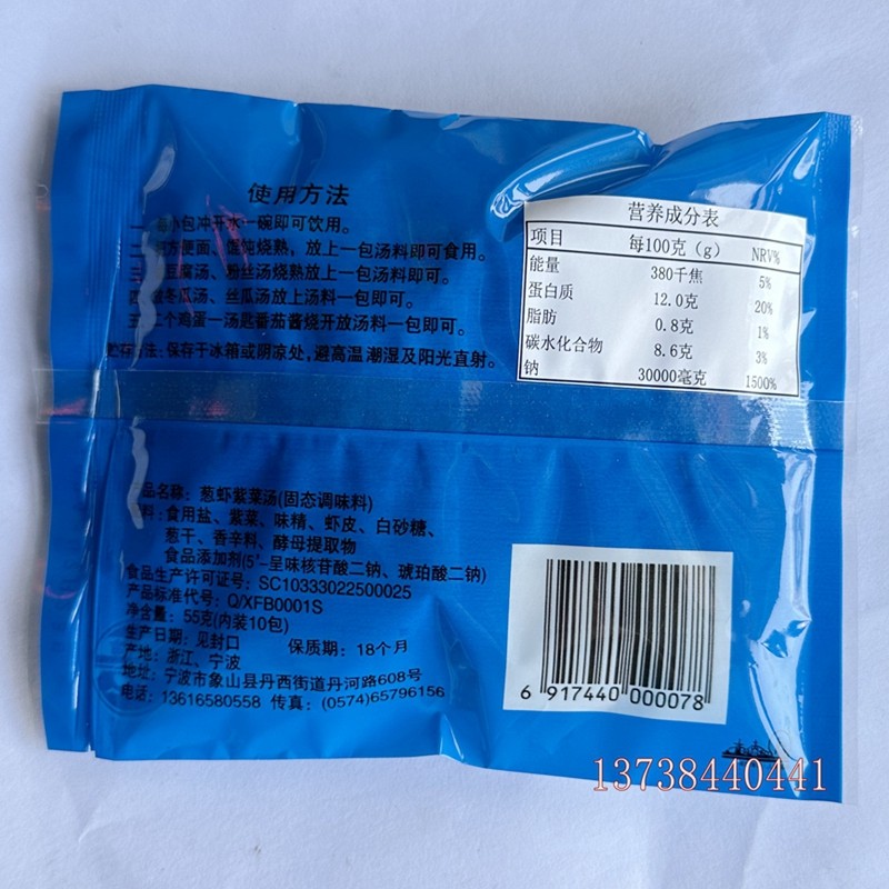 速食汤 宁波象山港葱虾紫菜汤 冲泡即食 海鲜味紫菜汤料包10小包