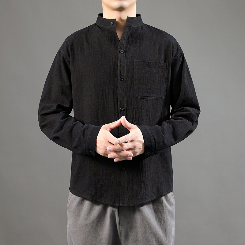棉麻长袖衬衫男短袖衬衣宽松男装中国风夏季棉麻男士纯色简约上衣