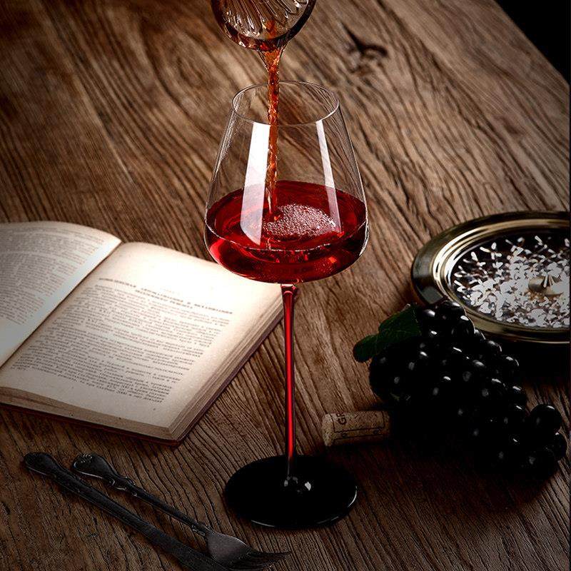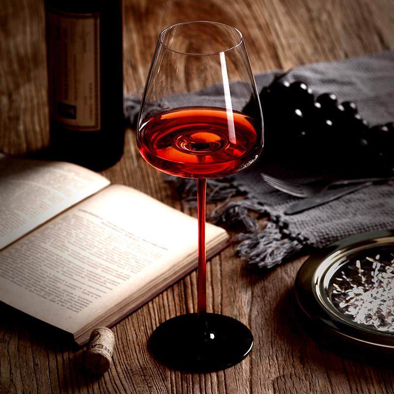 高级奢华黑领结红酒杯红杆杯勃艮第水晶玻璃家用高脚杯醒酒器套装