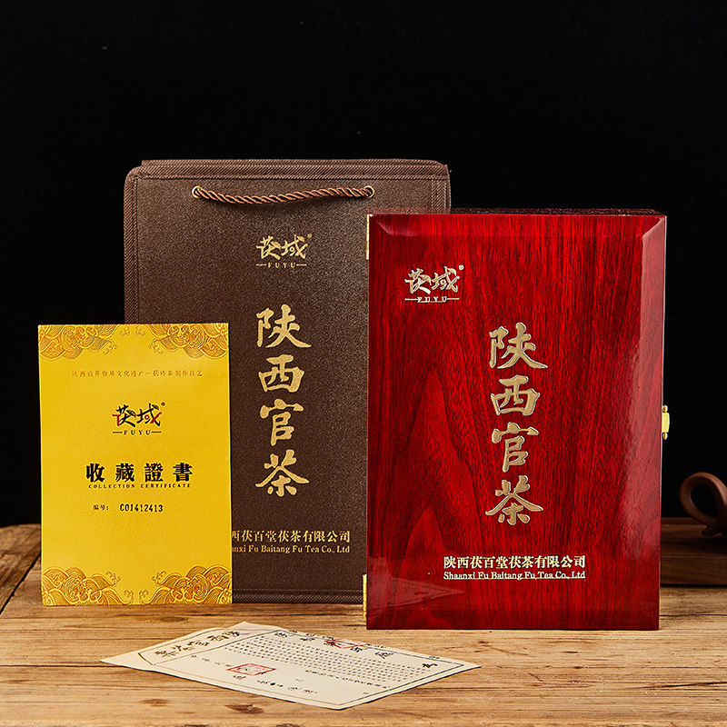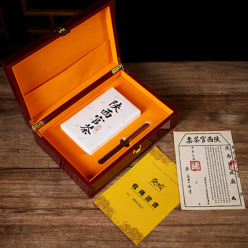 陕西官茶泾阳茯茶红木礼盒500g陕西茯茶西安特产手筑茯砖伏茶黑茶