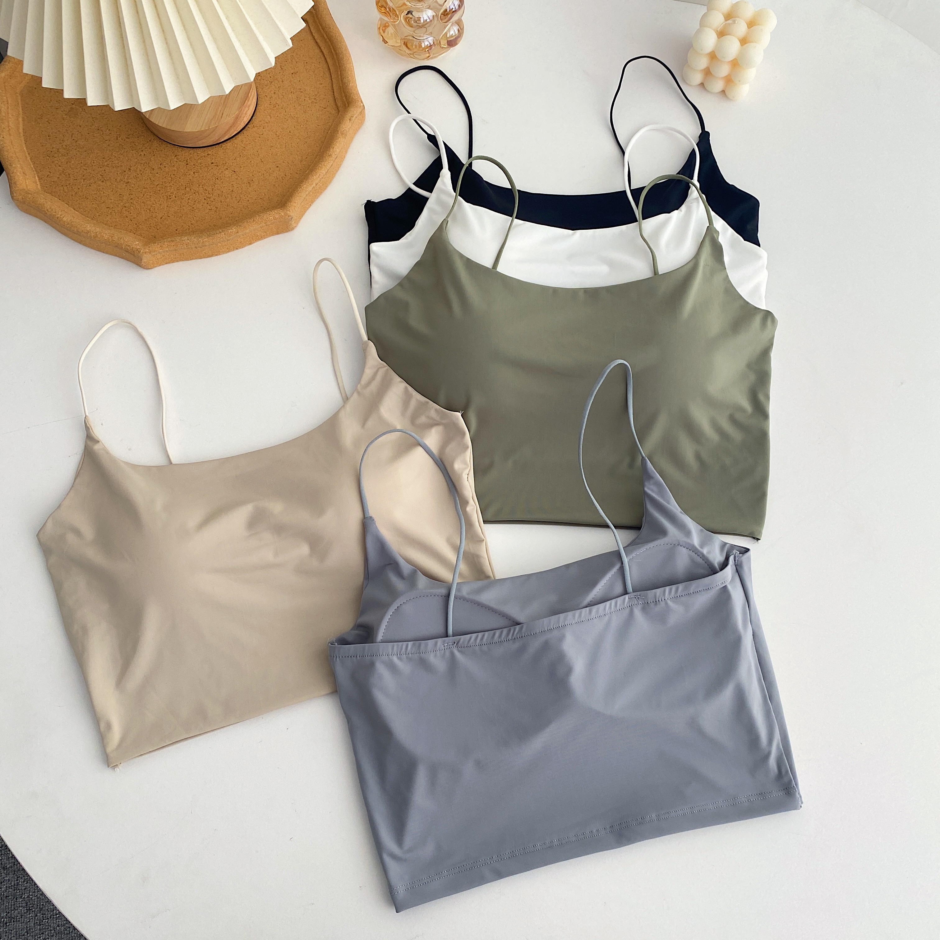 冰丝纯色吊带背心女内衣带胸垫一体聚拢无钢圈文胸防走光打底抹胸