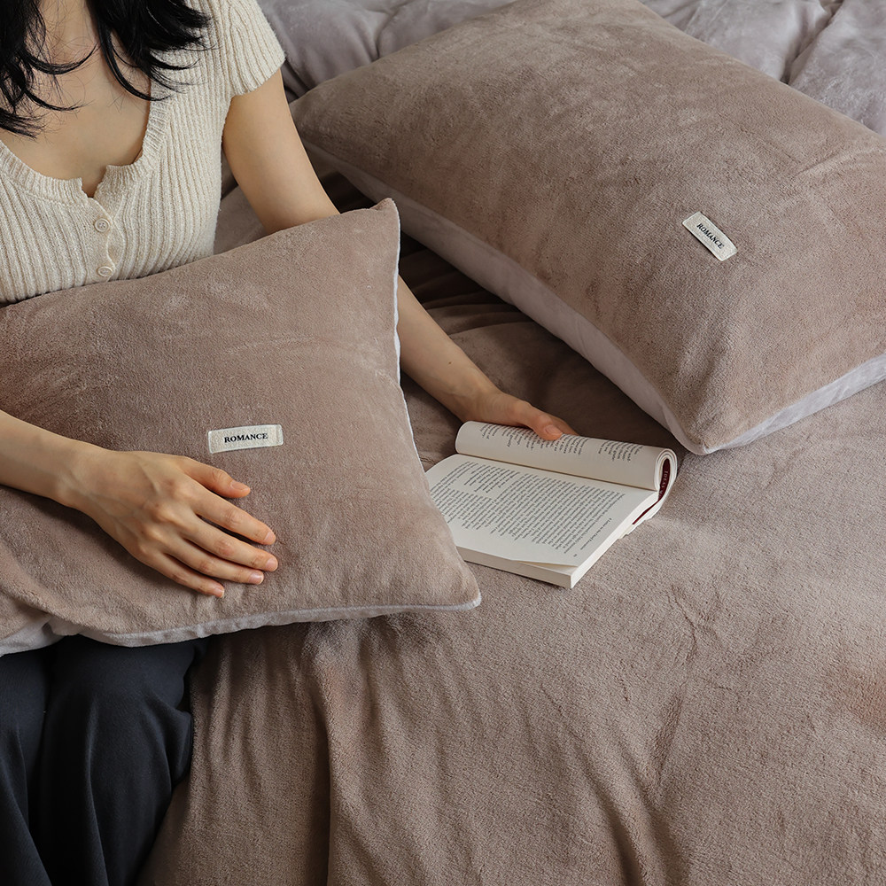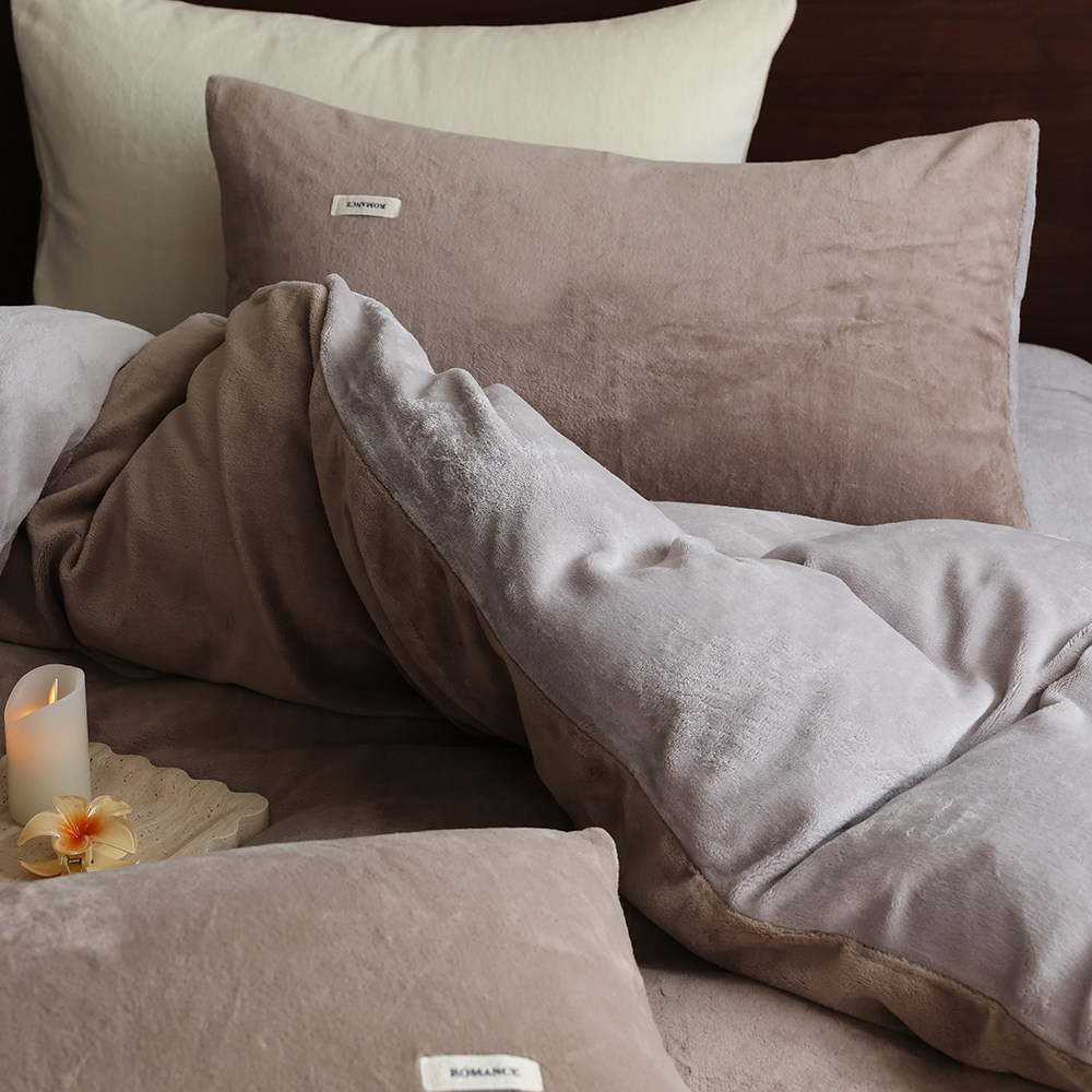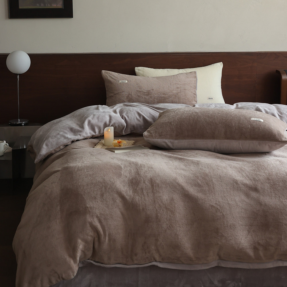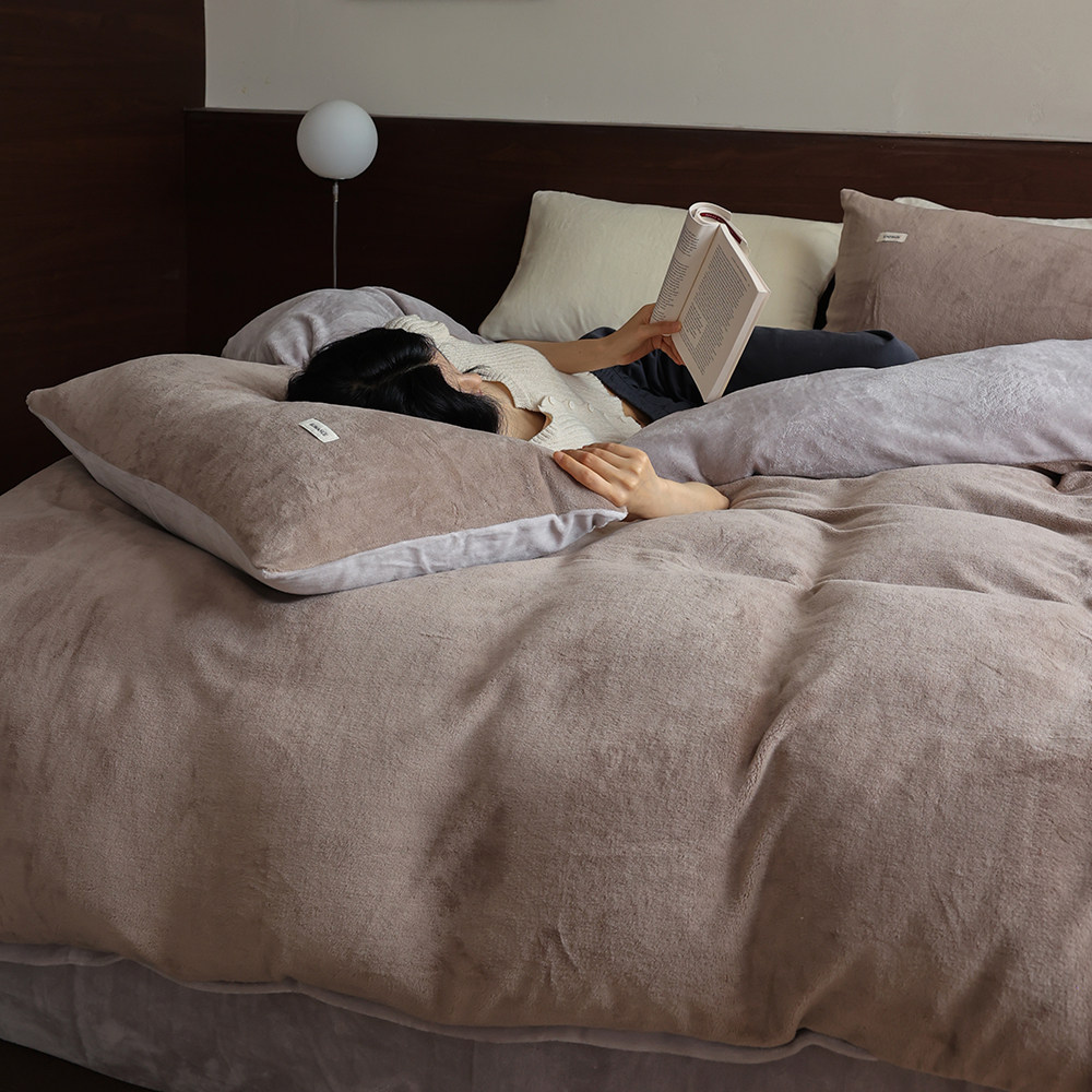 简约秋冬撞色加厚保暖230G牛奶绒双拼四件套珊瑚绒被套床上用品