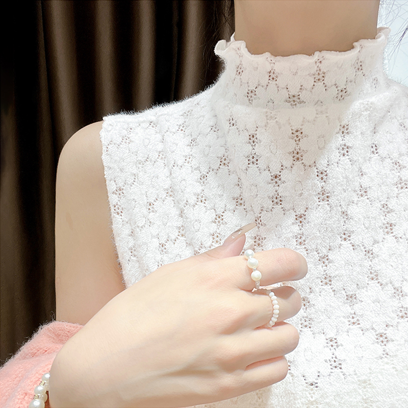 蕾丝打底衫女秋冬2025新款洋气内搭镂空高领无袖假领背心雷丝上衣