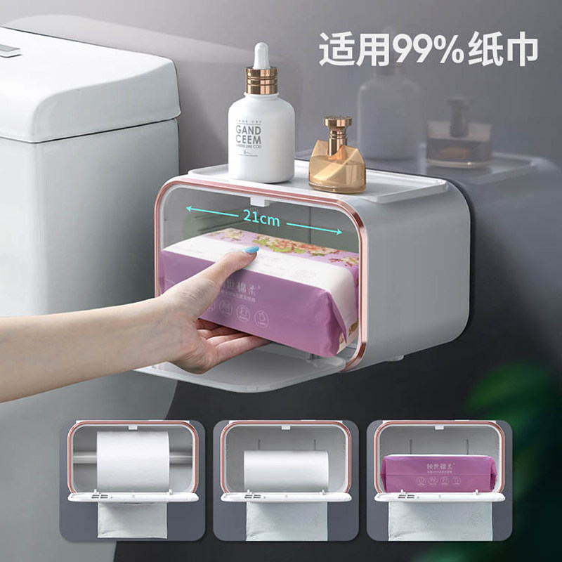 卫生间纸巾盒轻奢厕纸盒壁挂式防水免打孔洗手间抽纸盒厕所卷纸架