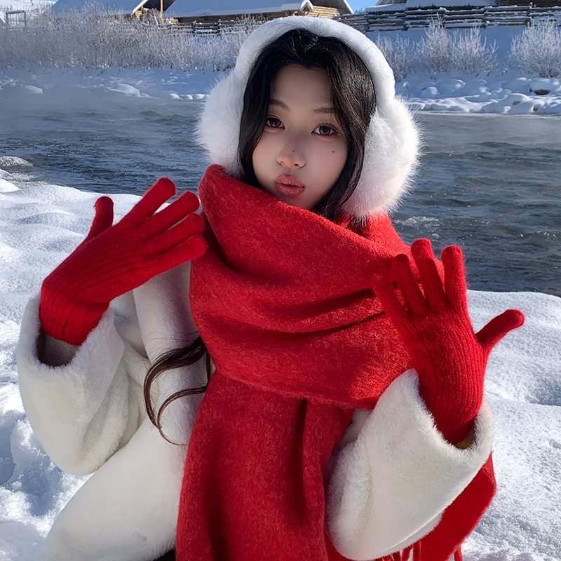 红色羊毛围巾女士冬本命年女生送女朋友生日礼物新年圣诞毛绒围脖