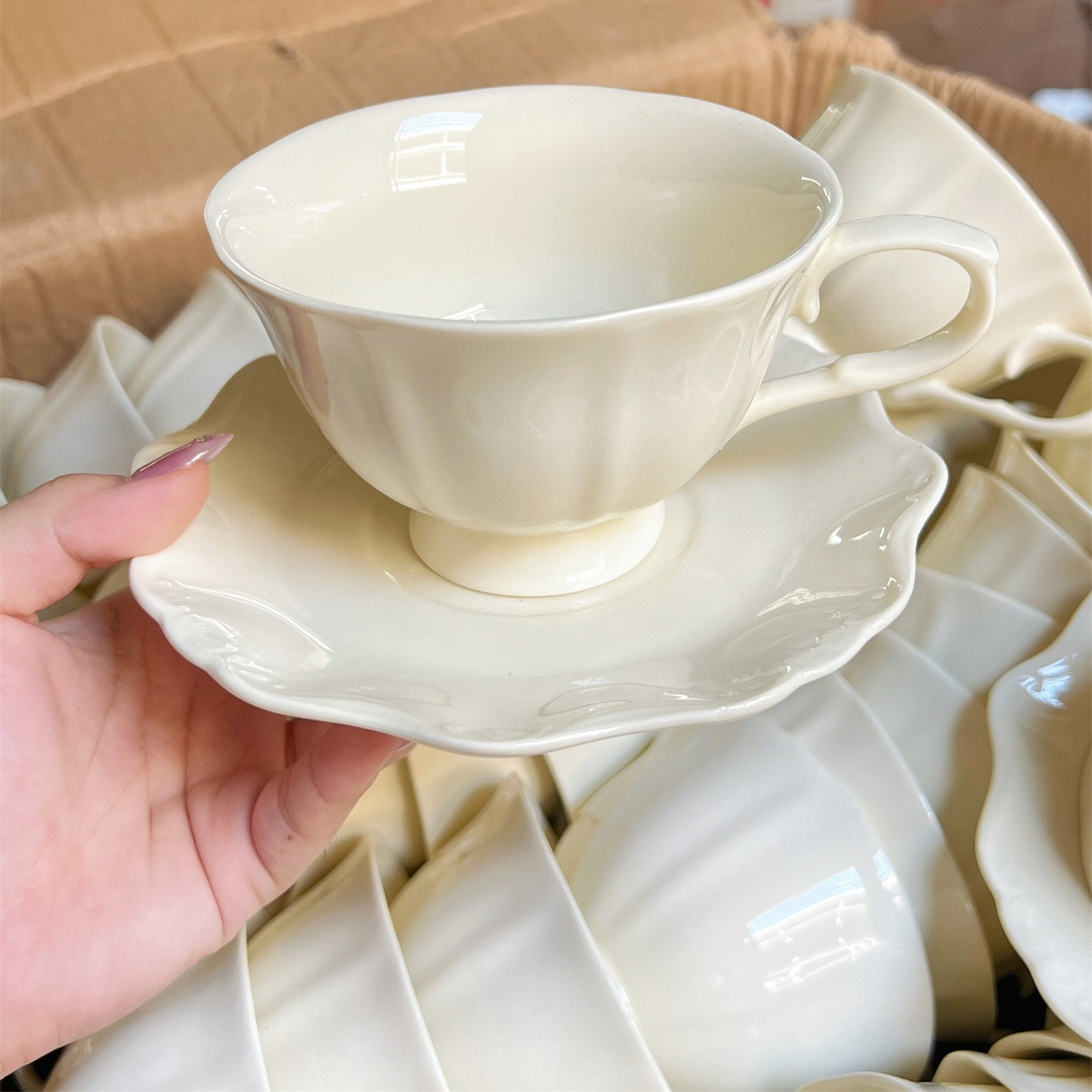 花瓣造型陶瓷咖啡杯碟高颜值