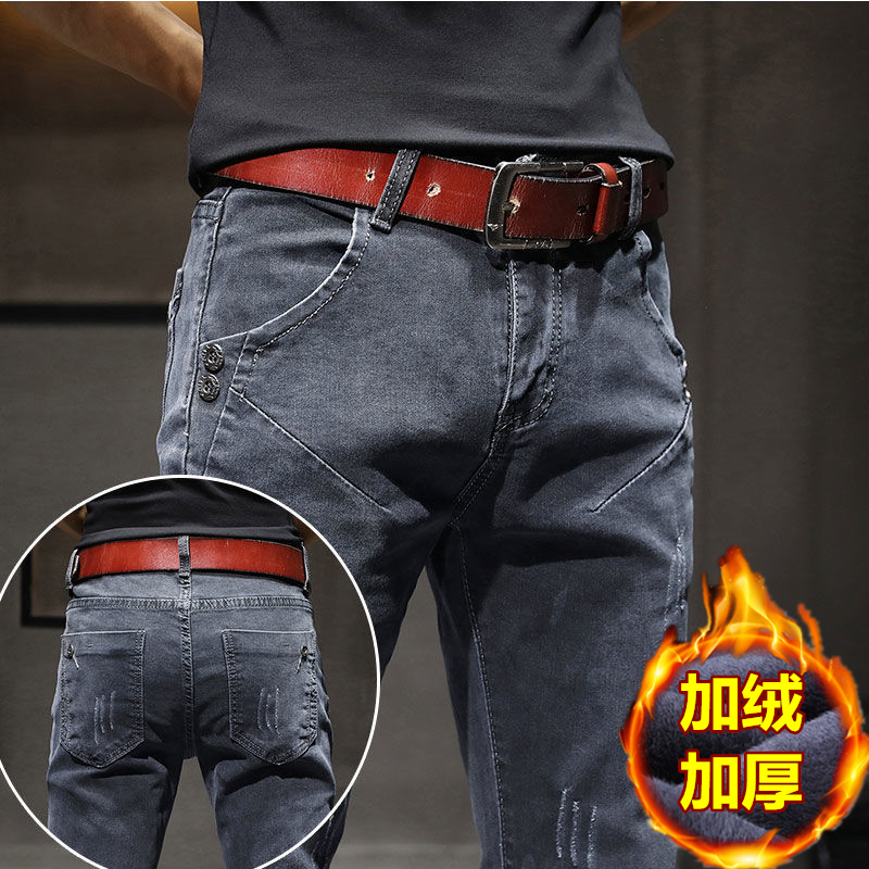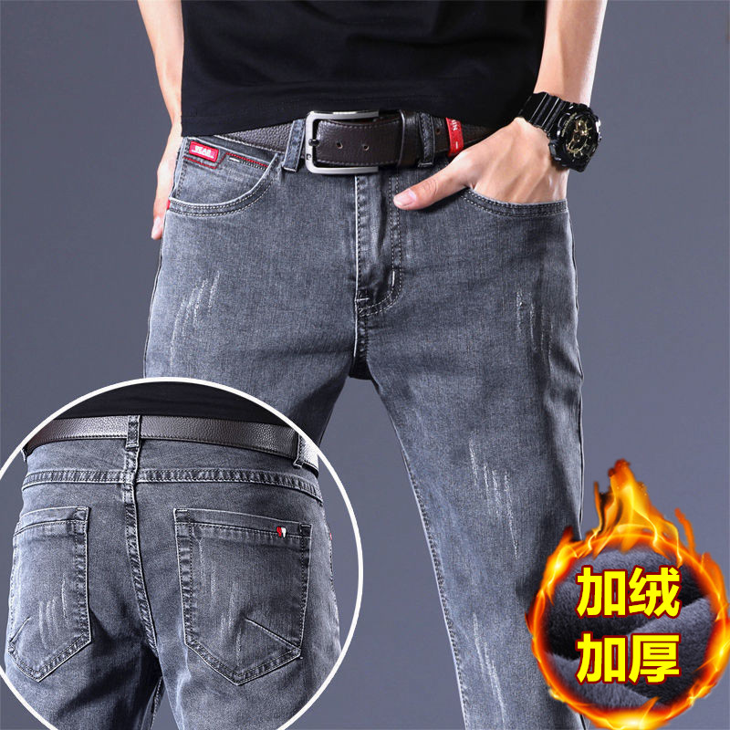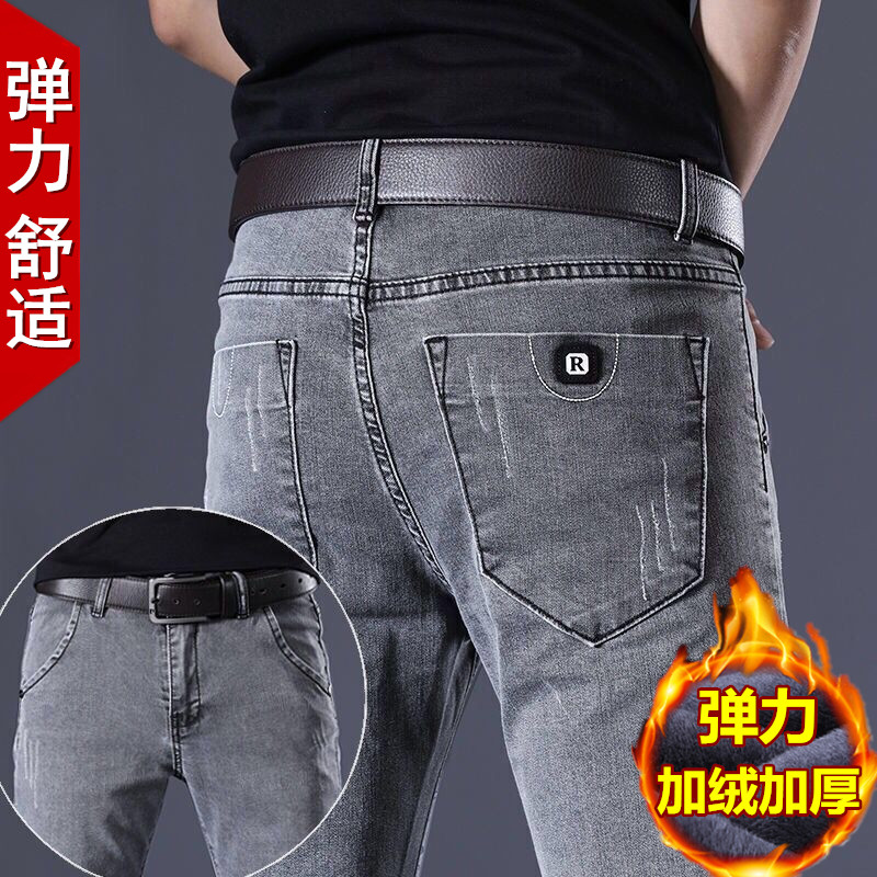 秋冬新款弹力加绒男士加厚牛仔裤