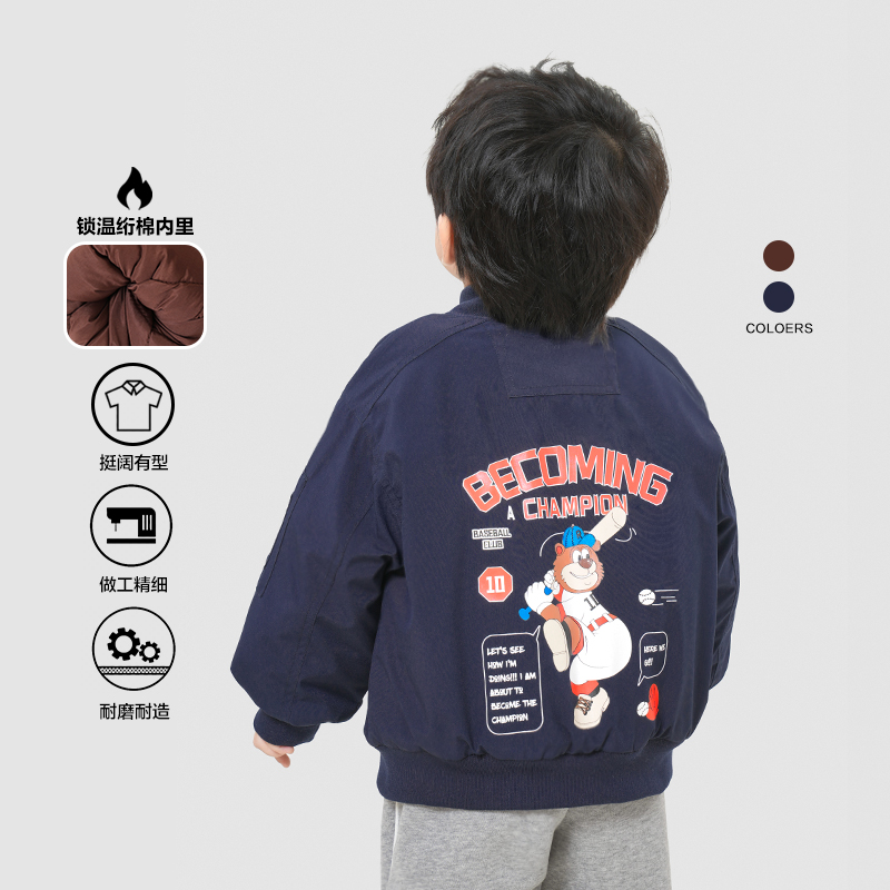 男童棒球服保暖棉服冬装冬季新款男孩棉袄童装儿童宝宝洋气外套潮