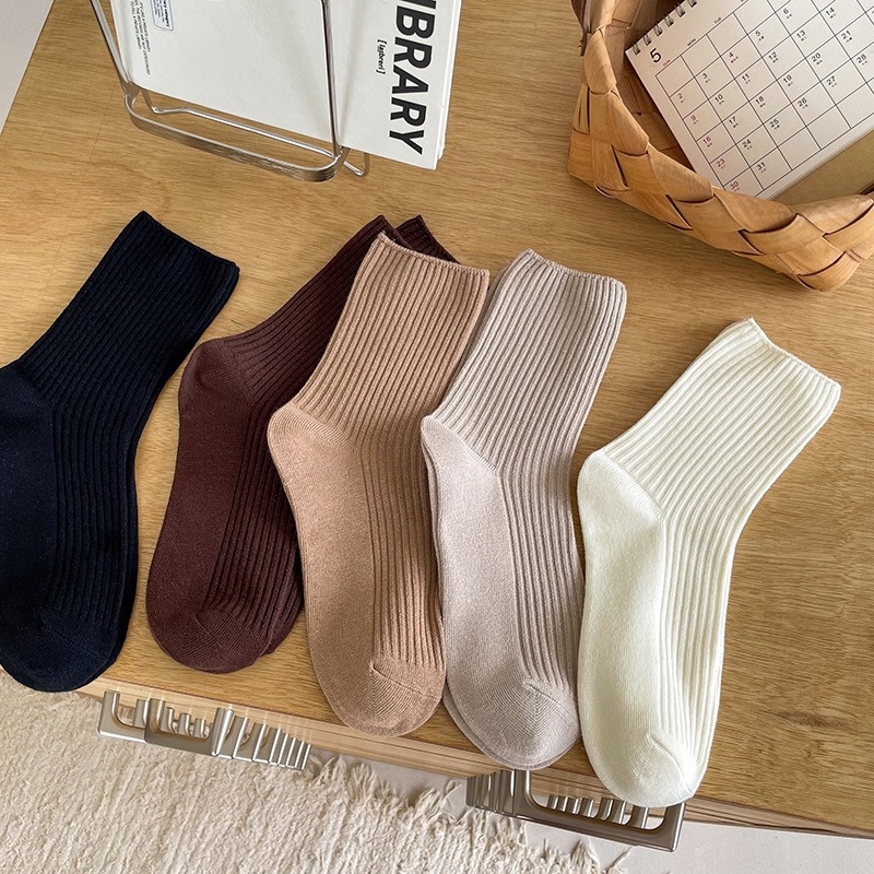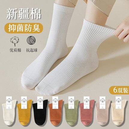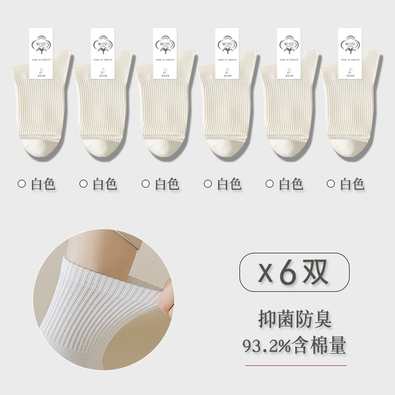6双-秋冬季袜子女中筒ins潮韩版纯色堆堆袜白色日系春秋薄款长袜