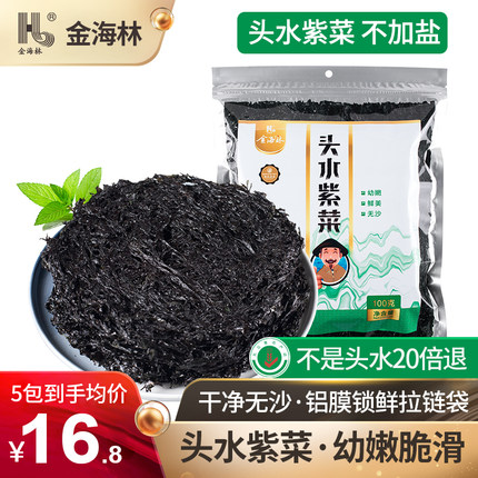 金海林霞浦头水紫菜干100g无沙非免洗福建特产级纯紫菜无料包头茬