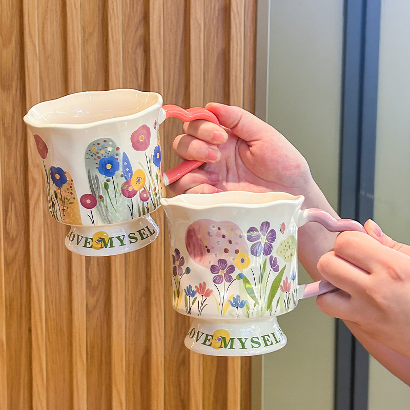 高级感手绘花卉陶瓷马克杯办公室咖啡杯情侣喝水杯送女生生日礼物