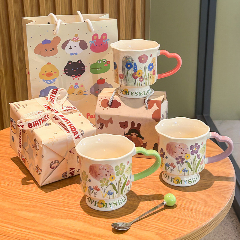 高级感手绘花卉陶瓷马克杯伴手礼