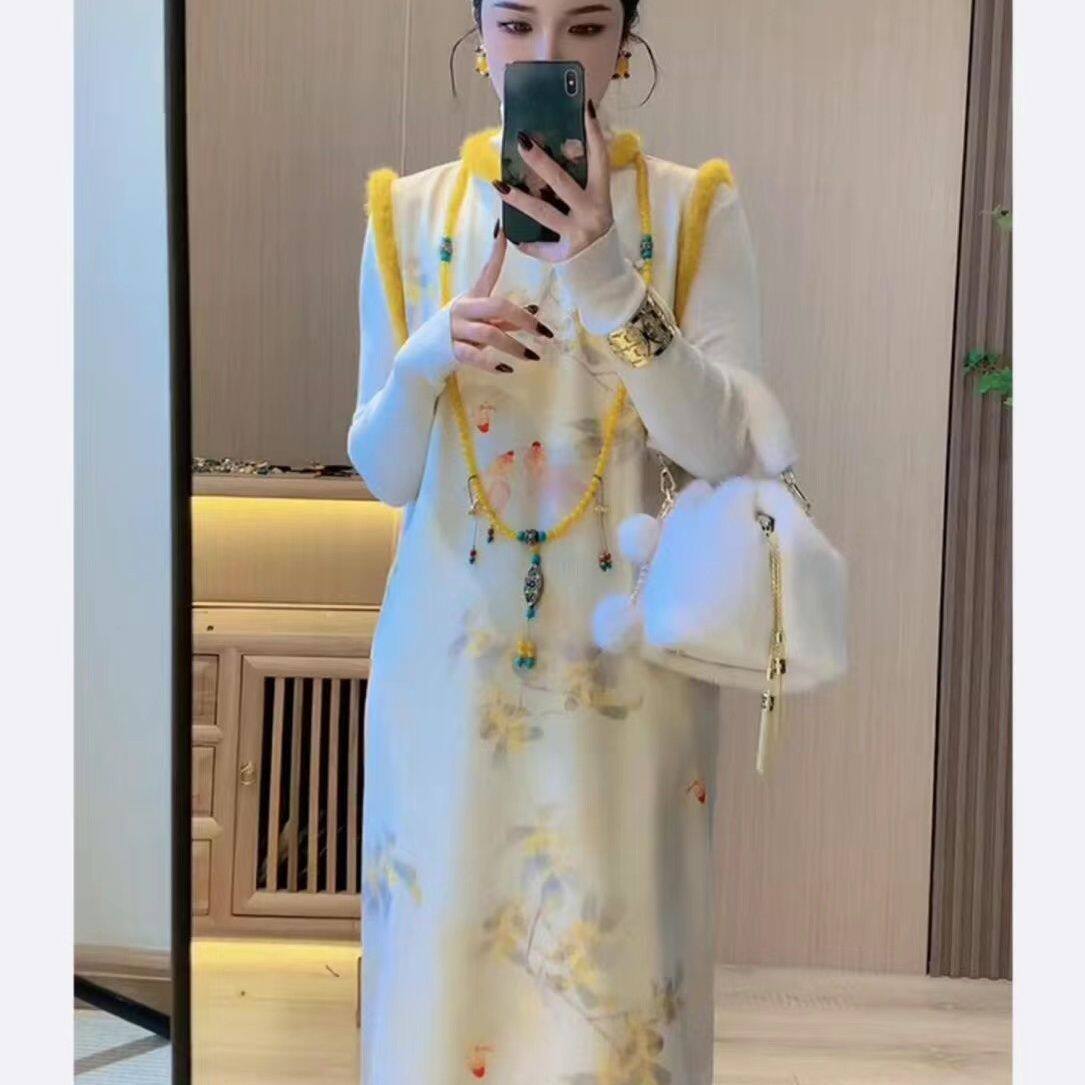 新中式加绒加厚无袖旗袍连衣裙