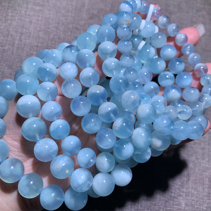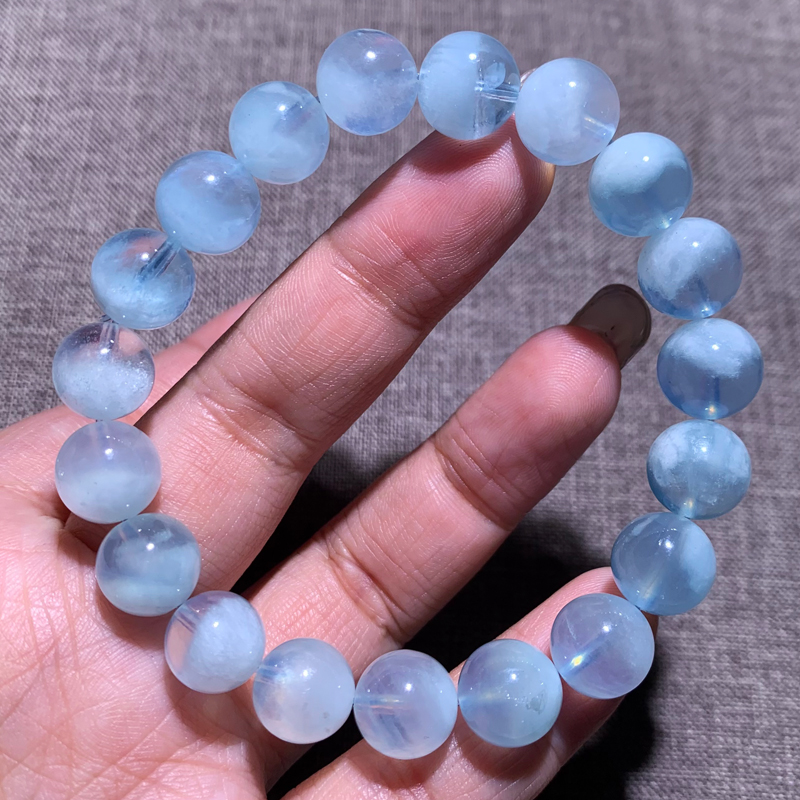 天然冰种蓝天白云海蓝宝石手链清润蓝色水晶情侣饰品送礼物男女款