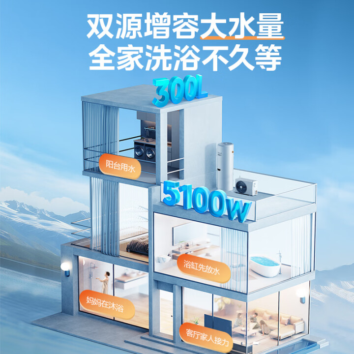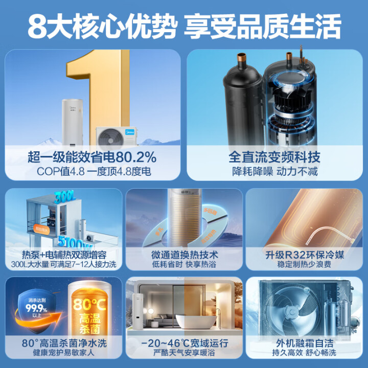 美的空气能热水器家用热泵电辅热水器一级能效变频省电睿泉300升
