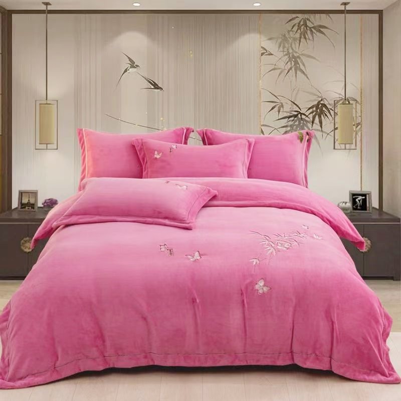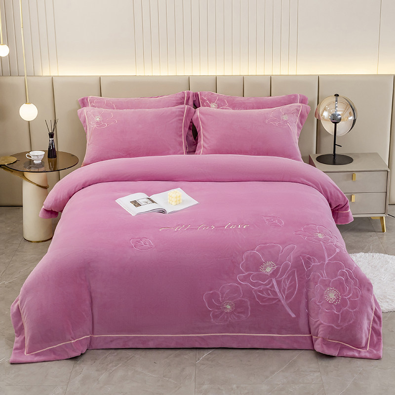 床上牛奶绒四件套双面珊瑚绒冬季法兰短毛绒床笠加绒加厚被套1.8m