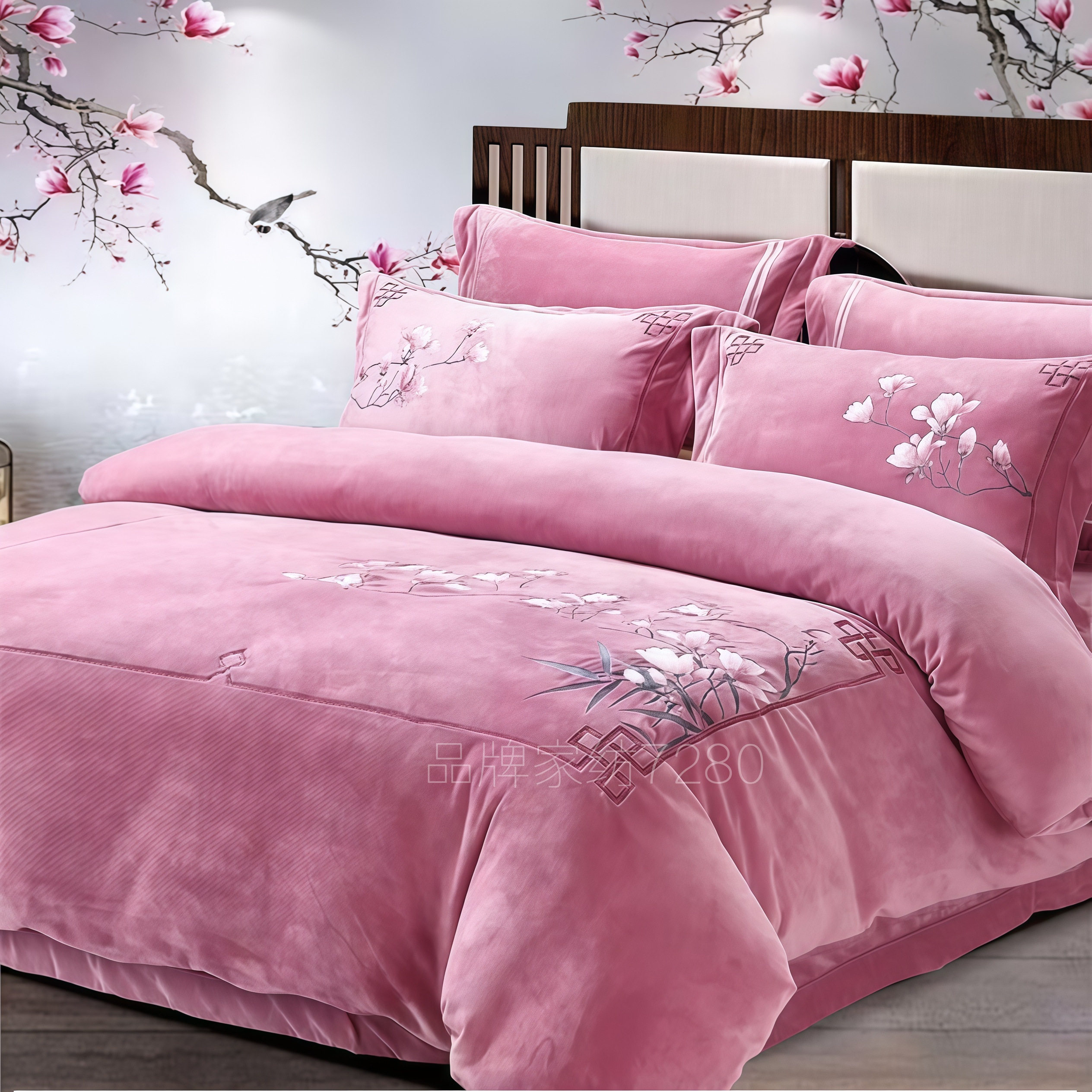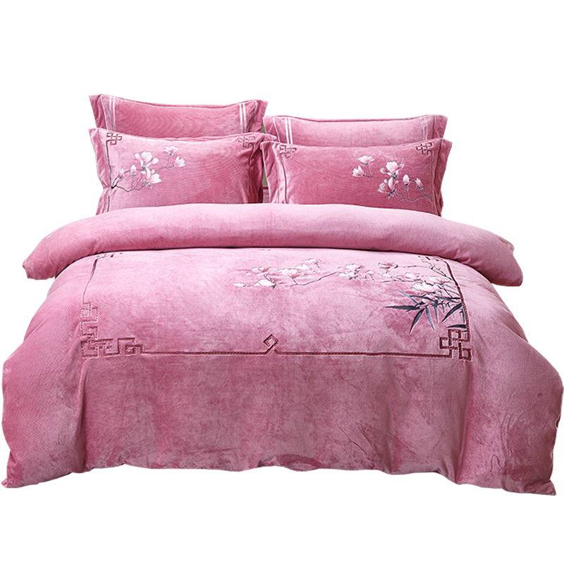 高端中式牛奶绒4件套防静电毛绒