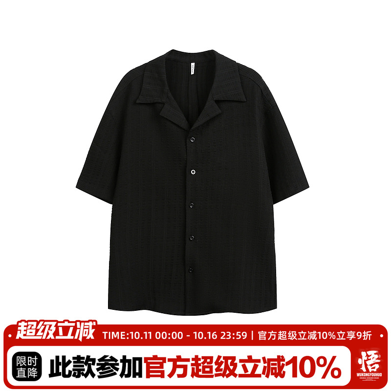 悟空有货肌理感提花古巴领短袖衬衫男女夏季宽松休闲cleanfit衬衣