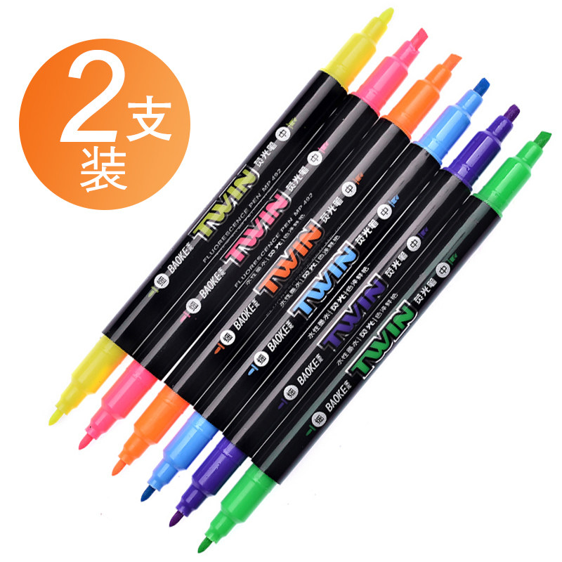 baoke宝克良品水性银光重点小双头荧光标记笔记号笔细款彩色一套
