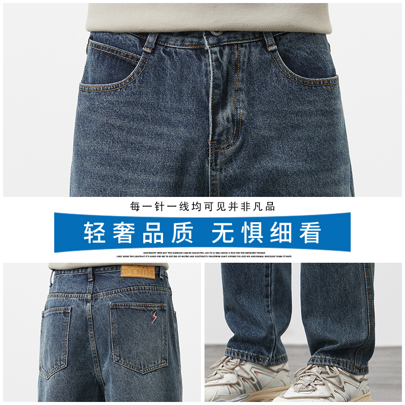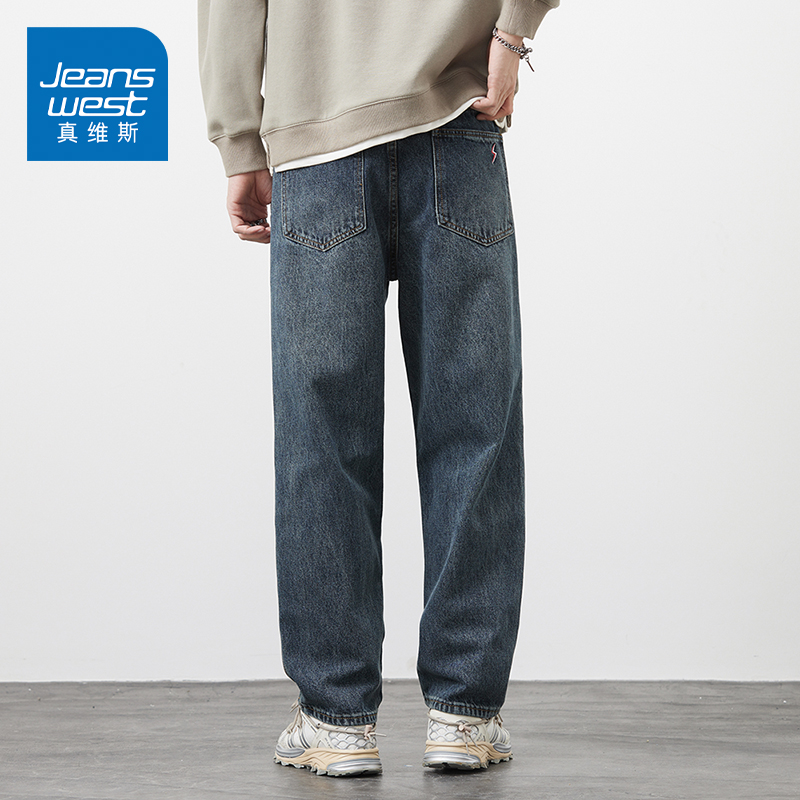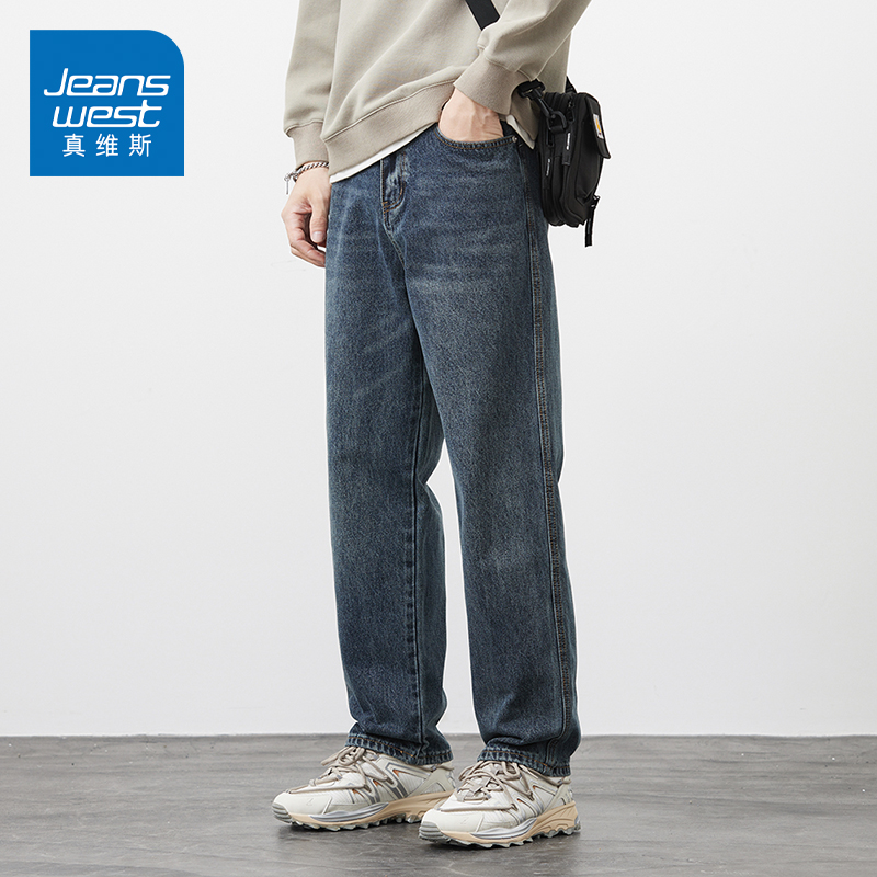 KZ真维斯日系复古牛仔长裤男士高端潮牌2025新款春秋季宽松男裤子