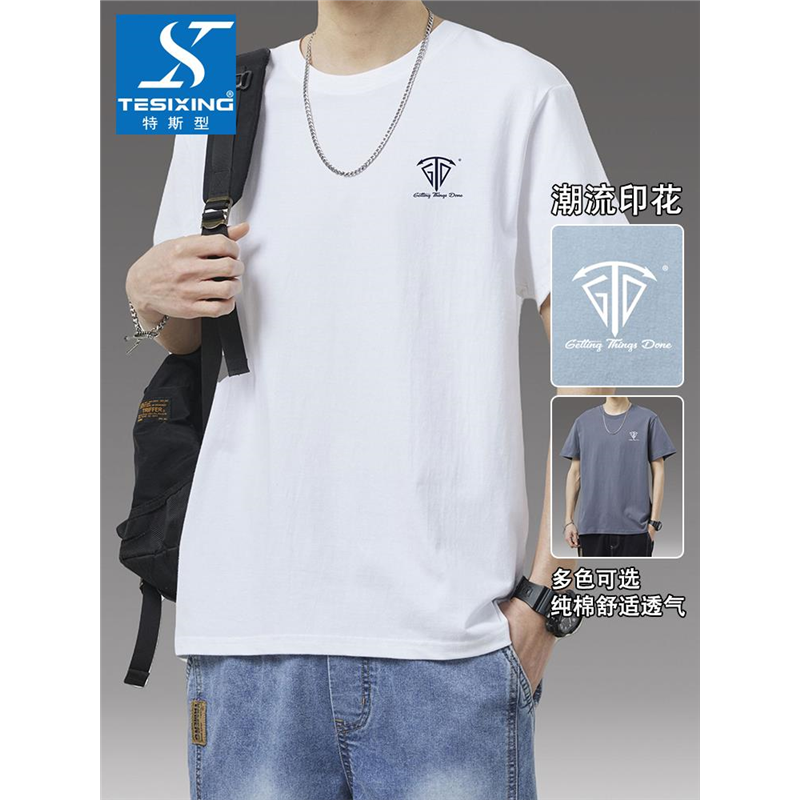 以纯YISHION短袖男士春季纯棉圆领t恤宽松休闲上衣潮流舒适衣服