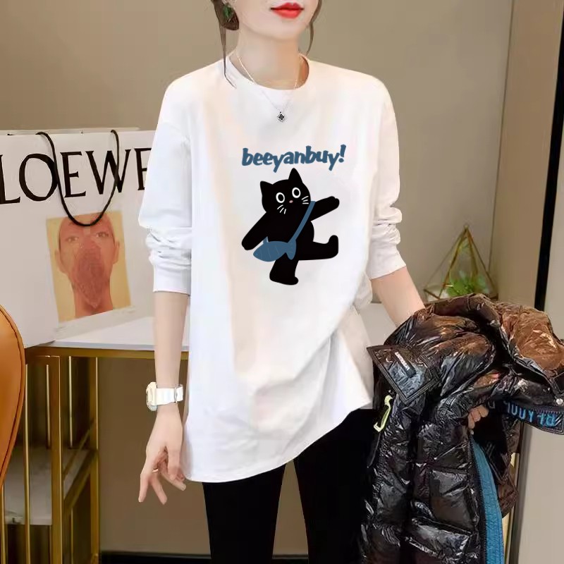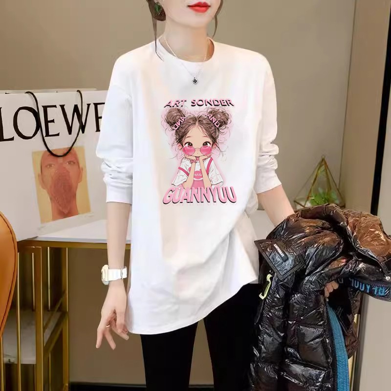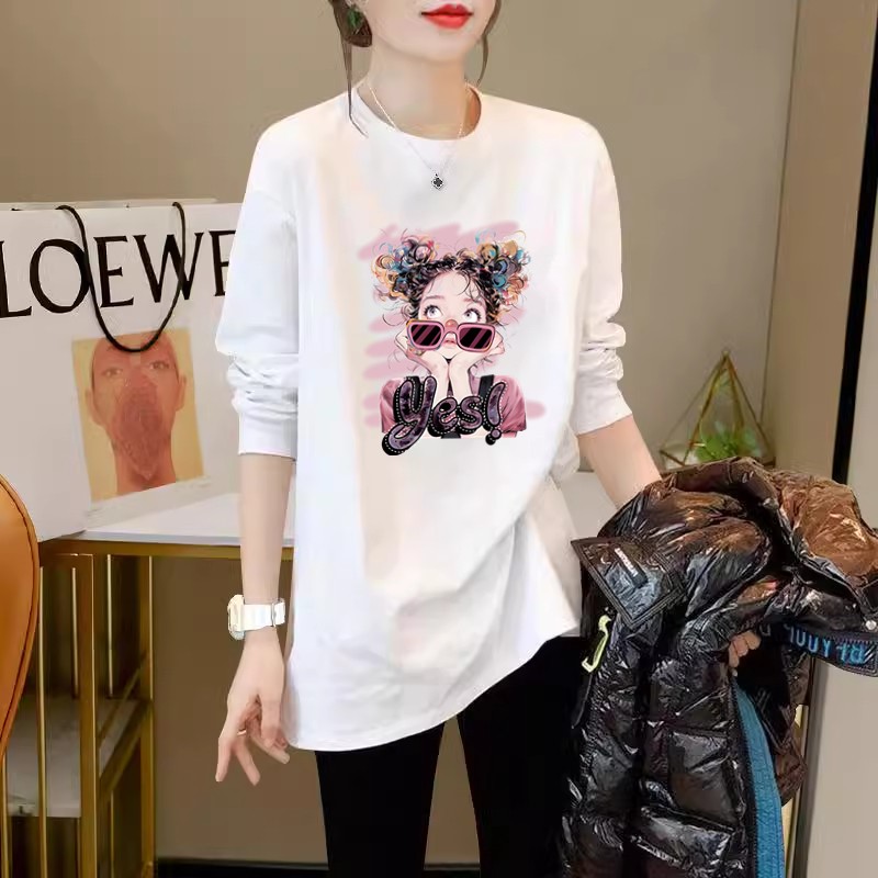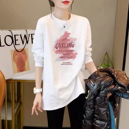 白色t恤女长袖2025春秋新款叠穿纯棉宽松显瘦遮屁股中长款打底衫
