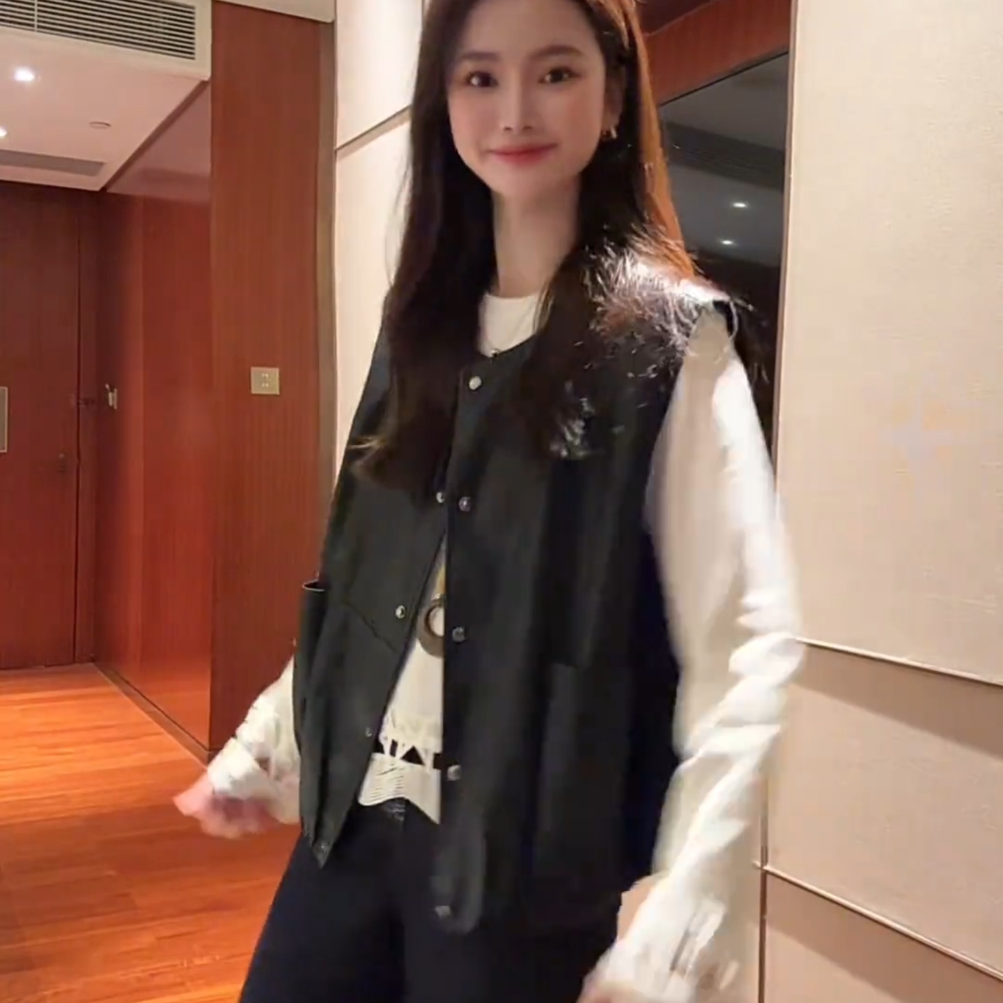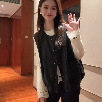 时尚休闲黑色皮衣马甲女2025秋季新款宽松休闲百搭单排扣显瘦马夹