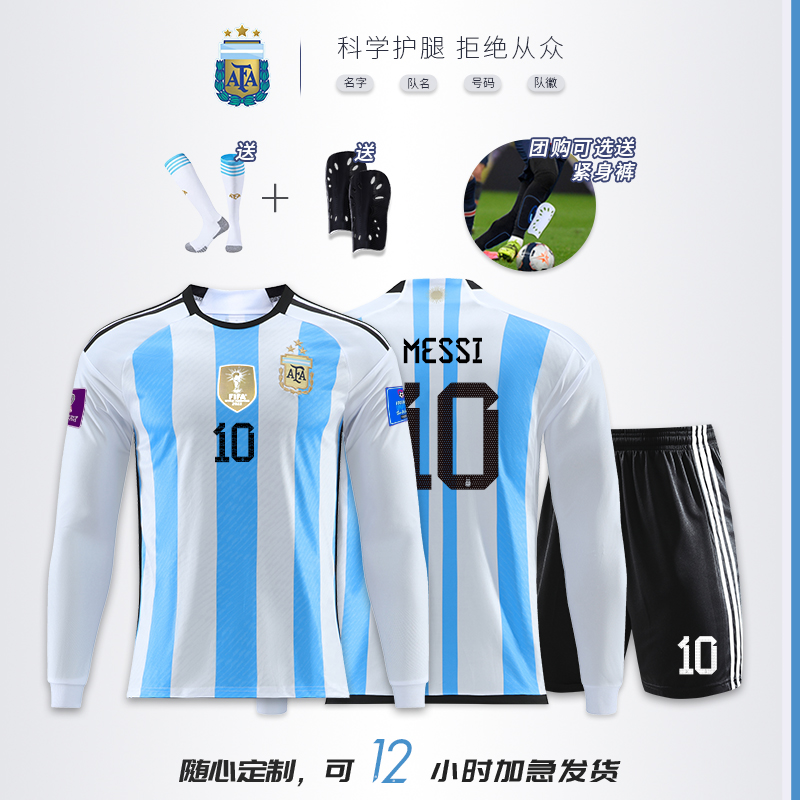 2526美洲杯三星阿根廷球衣训练服梅西足球服10号套装儿童成人定制