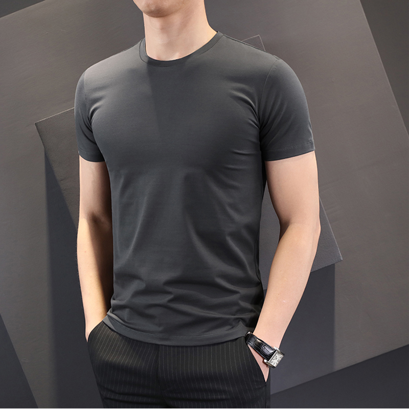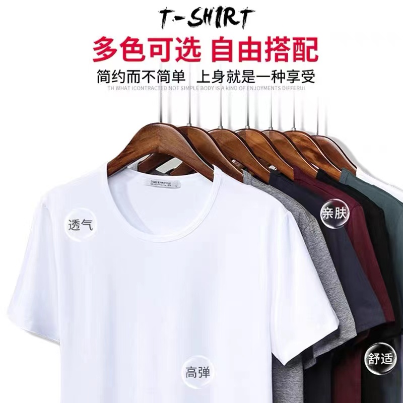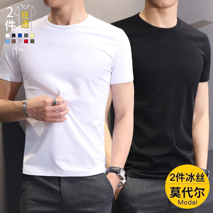 夏季莫代尔白色t恤男纯色半袖衫男打底短袖潮流修身体恤百搭上衣T