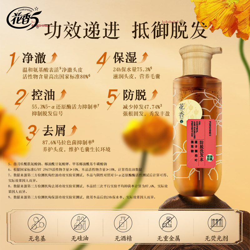 花香5防脱固发洗发水液控油护发去屑清洁保湿洗头膏官方正品